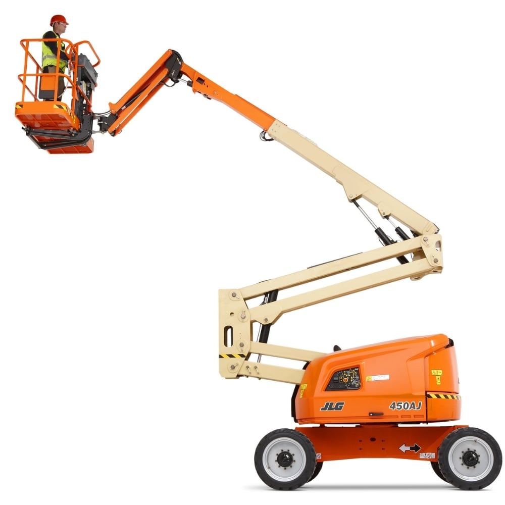 JLG 450AJ articulating boom lift offers exceptional outreach and flexibility for tough job sites.