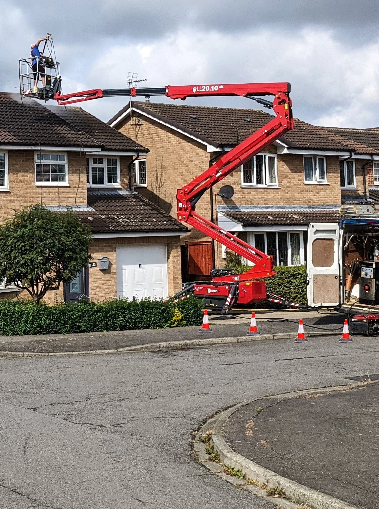 Solution: The company had hired Hinowa spider platforms before. They proved ideal for cleaning the roofs and gutters of domestic and commercial properties – tasks that formed the core of their high level cleaning business.