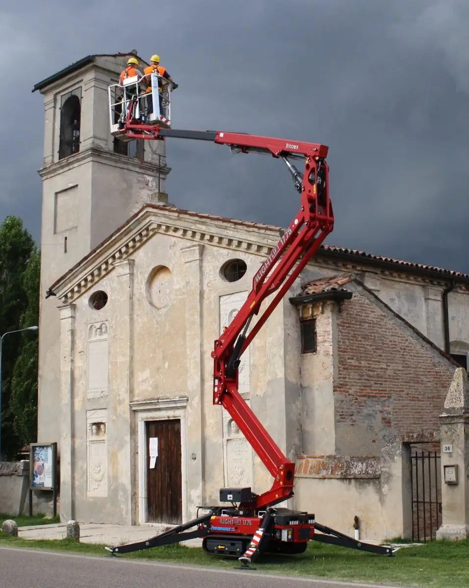 The Hinowa Lightlift 17.75 Performance IIIs has a platform load capacity of 230kg available without restriction throughout its working envelope. This high-performance tracked boom offers a working height of up to 17m, a maximum outreach of 7.5m, and features a dual pantograph lifting mechanism which allows it be used flush against a wall.