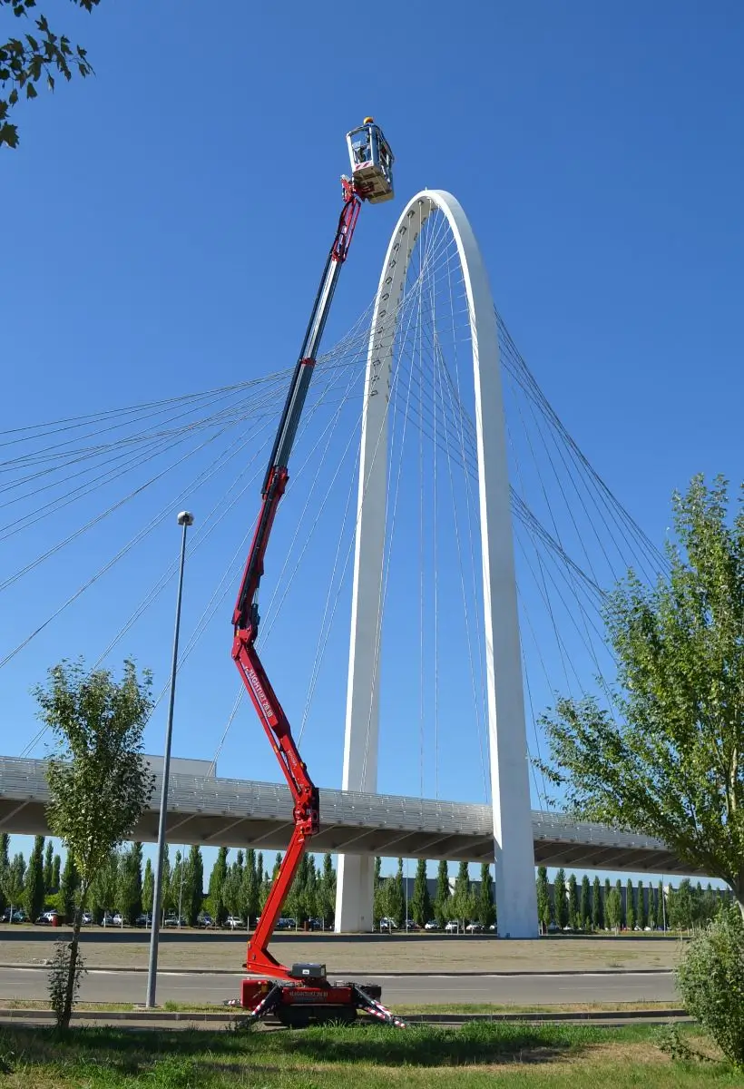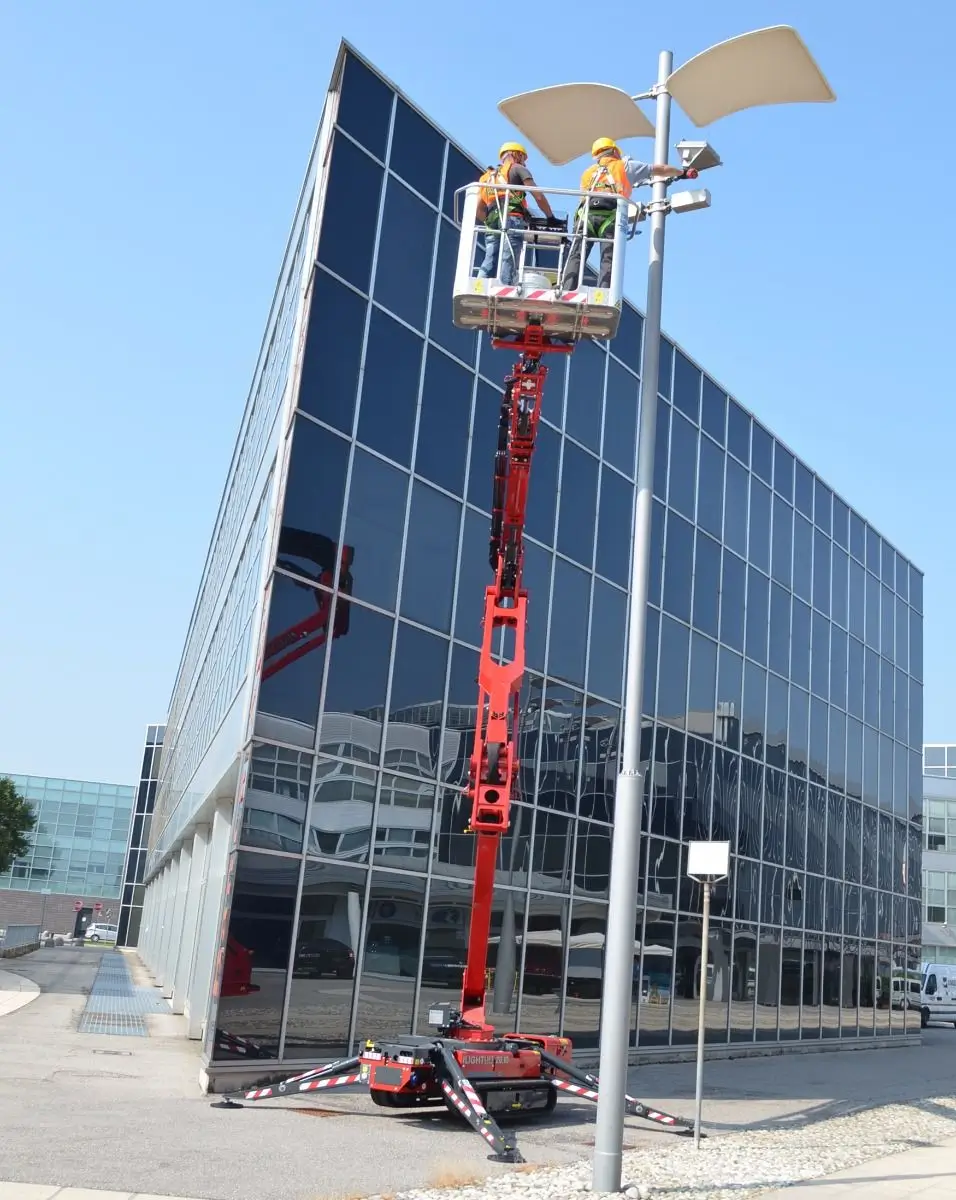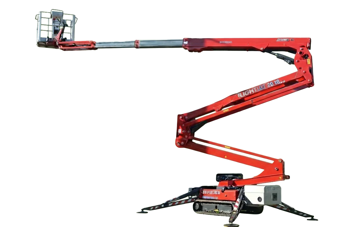The Hinowa Lightlift 20.10 spider boom provides a working height of up to 20.1m and a maximum horizontal outreach of 9.7m. Its exceptional lift capacity of up to 230kg can accommodate two people with tools, further increasing productivity. Available with a diesel engine combined with a mains electric power of 110 or 220V, or with a lithium battery for pollution-free operation.