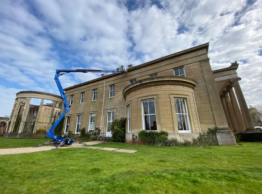 The Worcester-based company has also taken delivery of a new Hinowa Lightlift 20.10 spider lift, putting it to good use on a maintenance project at a Grade II listed Greek Revival country house.